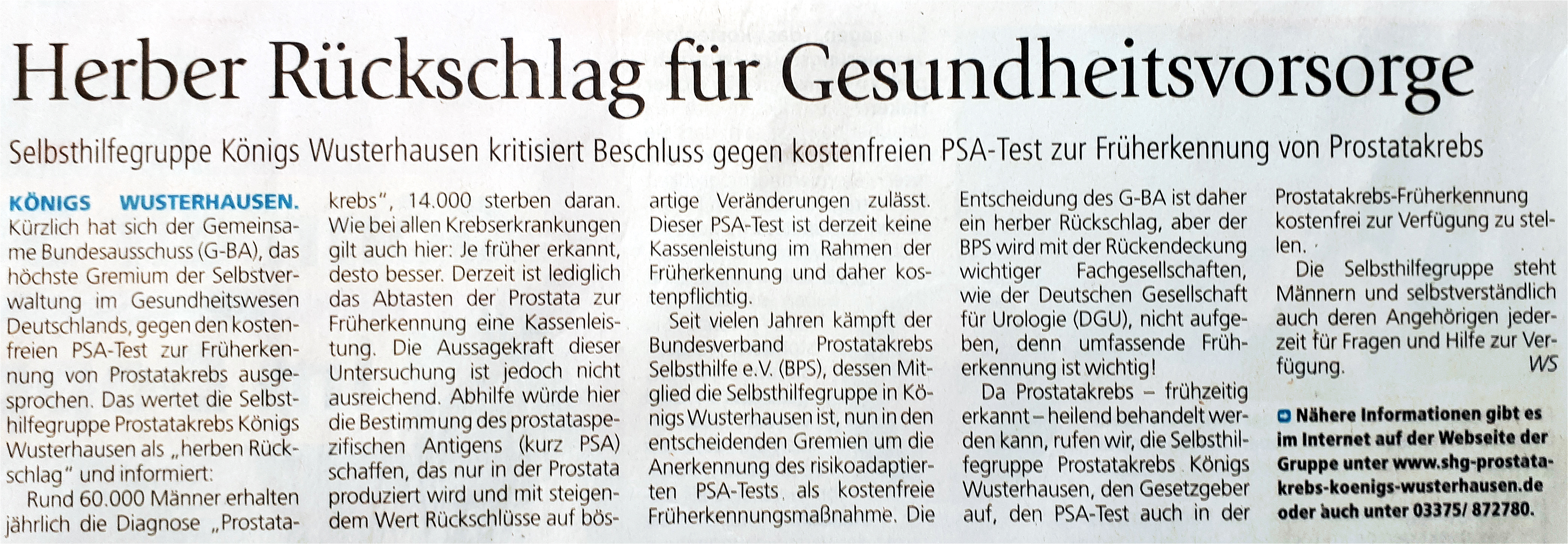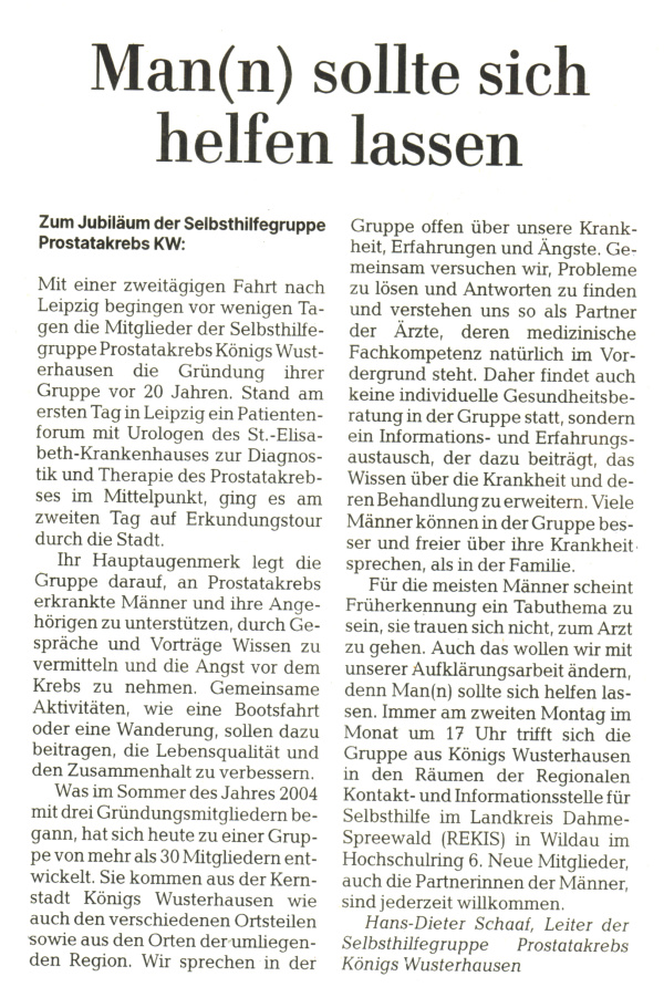 veröffentlicht unter dem Titel "Männer lasst uns reden! Fokus: Urologie und Prävention".